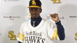 世界的有望株でソフトバンクと育成契約を結んだジョナサン・モレノ内野手(18)が14日、みずほペイペイドームで入団会見に臨んだ。多くの報道陣に囲まれ、恐縮しながらも「僕のセールスポイントは守備です。
